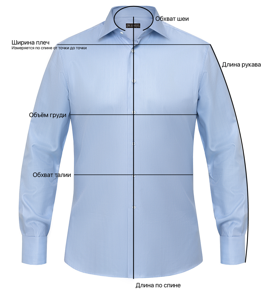 Нам хочется, чтобы вы носили наши рубашки с удовольствием и были уверены при покупке, что выбранный размер Вам подойдёт. Итальянская система размеров отличается от нашей, поэтому мы подготовили специальные таблицы, которые помогут Вам сориентироваться. Для того, чтобы точно подобрать свой размер, Вы можете замерить основные параметры фигуры, либо размеры имеющейся у Вас рубашки (смотрите картинку), и сравнить их с данными в нашей таблице. Важно отметить, что в реальности некоторые параметры могут отличаться от данных в таблице от 0,5 до 1,5 см, что является нормой при ручном пошиве – обычно это не влияет на общие параметры в рамках размера.