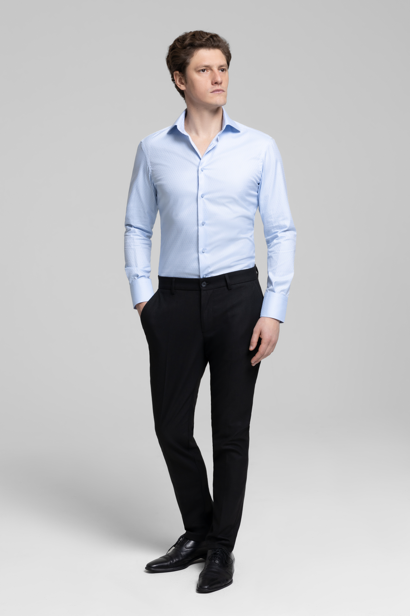Рубашка голубая с жаккардовым плетением «Ромбы»