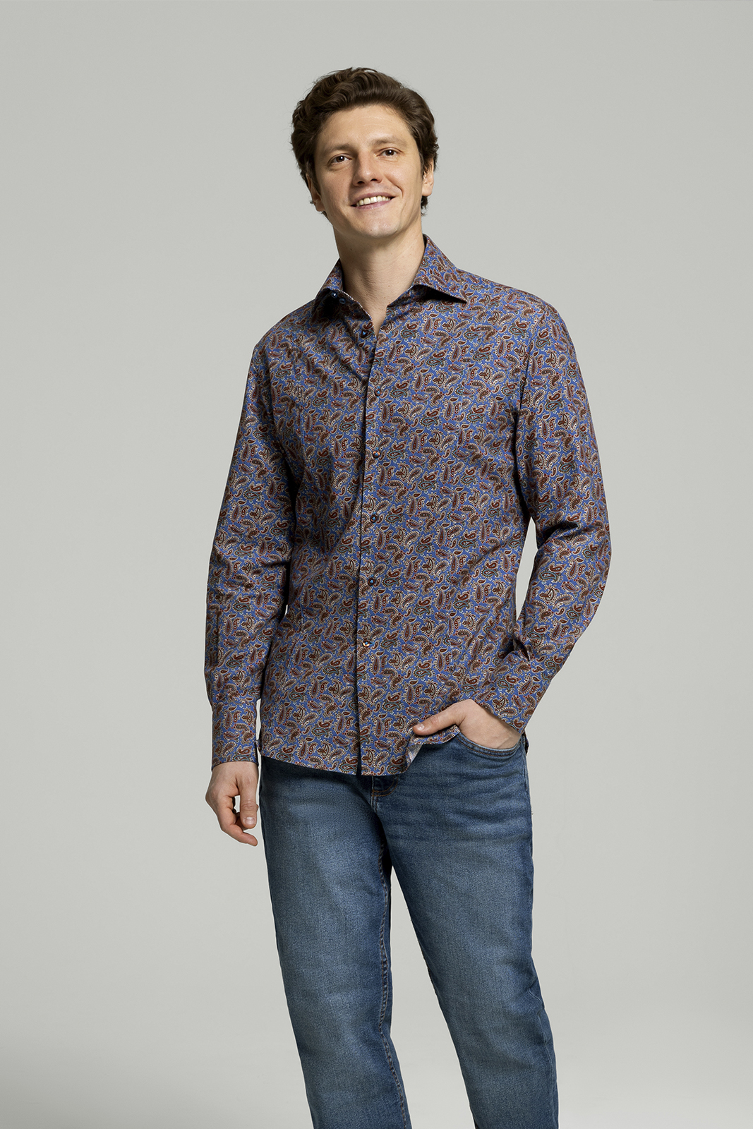 Рубашка из микровельвета с коричневым орнаментом пейсли