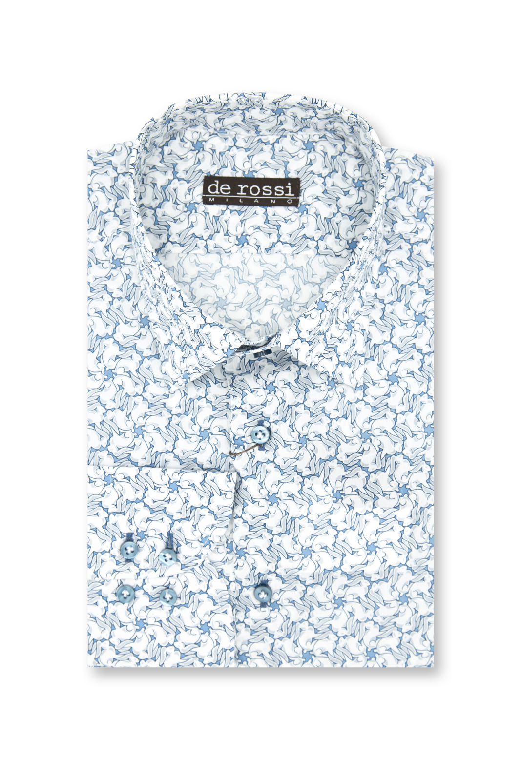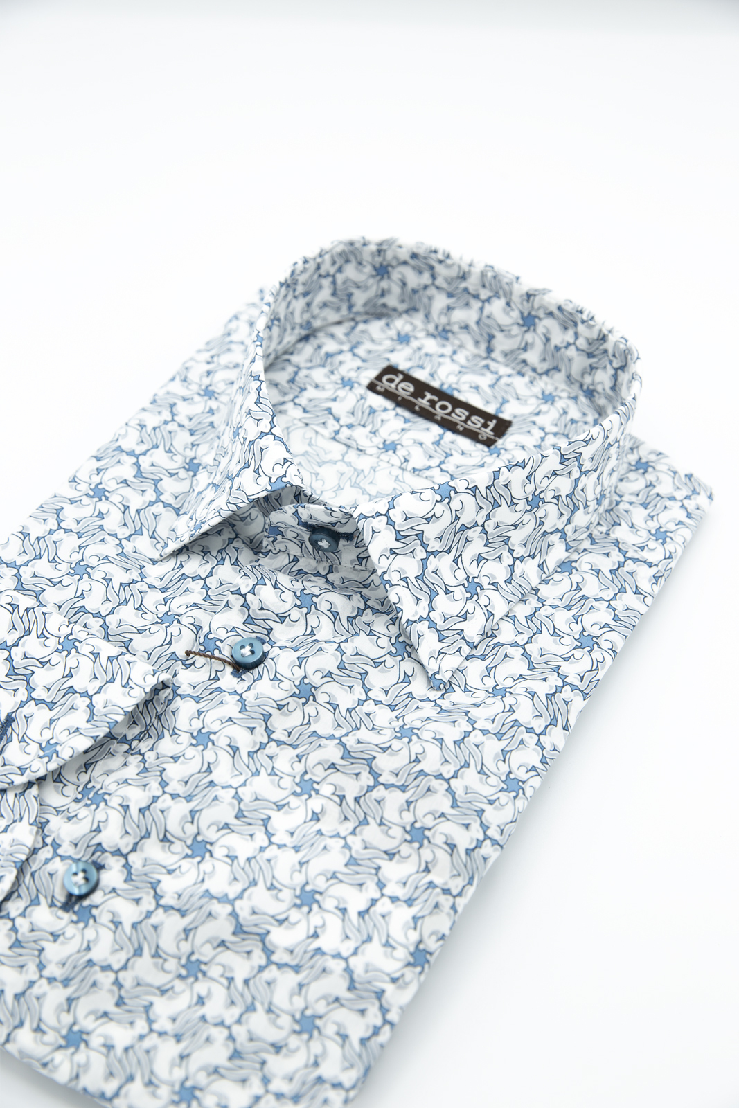 Вам понравится то, что кролики замаскированы в снежинки и их не сразу замечаешь. Издалека этот рисунок в голубых тонах напоминает снежные клубочки или крупные кружащиеся снежинки – поэтому он создаёт зимнее новогоднее настроение. Эта рубашка просто создана, чтобы в ней встретить Новый год!