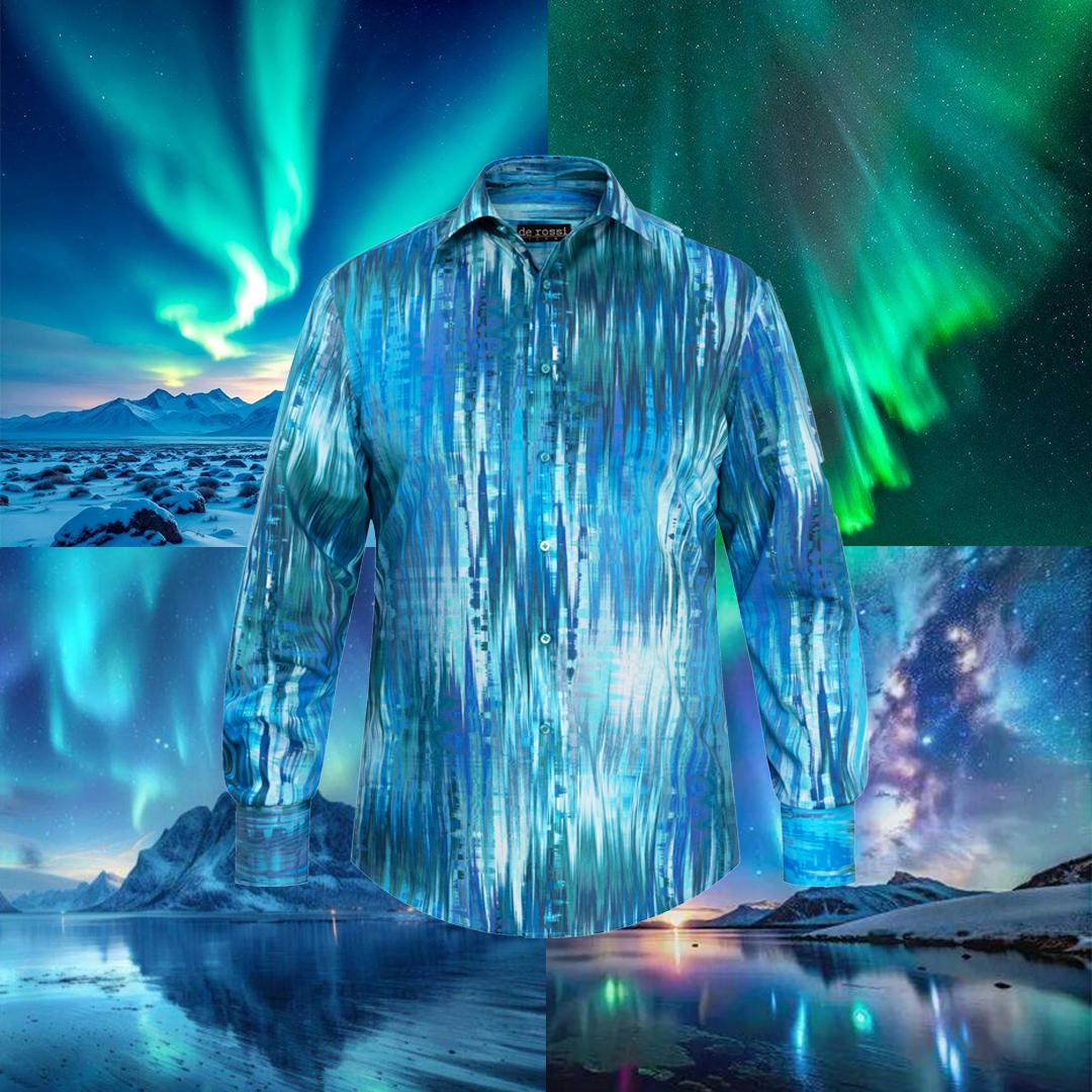 Представляем вам рубашку "Северное сияние" из коллекционной серии. Такое ощущение, что она светится! В сочетании с голубыми джинсами, или синим пиджаком, или с сине-голубой курткой – она просто огонь!